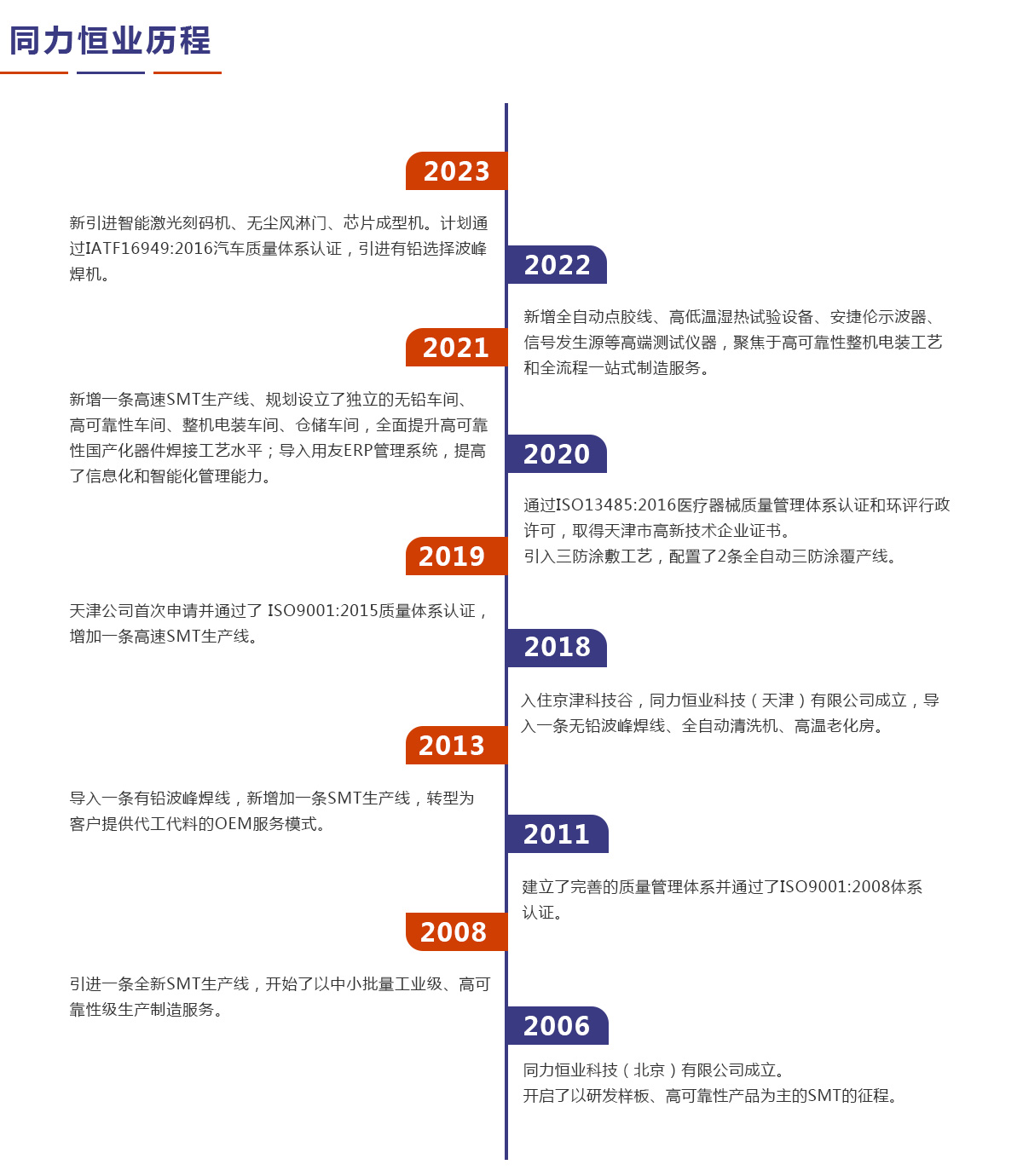 同力恒業(yè)科技成立于2006年,專業(yè)從事電子制造服務(wù)(EMS),專注于為客戶提供產(chǎn)品開發(fā)、工藝設(shè)計、物料配套、精密貼裝、插件焊接、三防涂敷、整機電裝、測試老化以及包裝運輸、售后維修等整個供應(yīng)鏈解決方案。公司定位于高可靠性及中高端產(chǎn)品電子制造服務(wù),在通訊導航、儀器儀表、醫(yī)療設(shè)備、汽車電子等領(lǐng)域具有豐富的一站式制造服務(wù)經(jīng)驗。